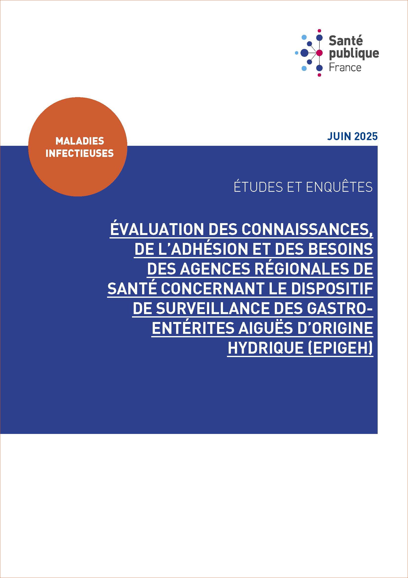 En 2019, Santé publique France a lancé, en partenariat avec la Direction générale de la santé (DGS) et les agences régionales de santé (ARS), le dispositif de surveillance EpiGEH, dédié au suivi des gastro-entérites aiguës (GEA) d'origine hydrique, c'est-à-dire liées à la consommation d'eau du robinet. La finalité de ce dispositif est de guider les mesures de gestion en identifiant les réseaux d'eau à risque. Il comprend une étape de détection de cas groupés de GEA avec une origine hydrique plausible réalisée par Santé publique France de façon rétrospective tous les quatre mois, une étape de validation des signaux détectés et une étape d'enquête environnementale impliquant les ARS. Après quatre années de mise en œuvre du dispositif EpiGEH, Santé publique France a engagé une démarche d'évaluation. Les agences régionales de santé (ARS) ont alors été sollicitées pour décrire leur niveau de connaissance et d'implication dans le dispositif, ainsi que pour identifier des pistes d'amélioration. Entre décembre 2023 et janvier 2024, une enquête en ligne a été ouverte sur la plateforme Lime Survey. Elle a été adressée aux personnels des ARS susceptibles d'intervenir dans le cadre du dispositif de surveillance et d'investigation (personnels des services de santé environnementale et de la veille et sécurité sanitaire). Au terme de la phase de recueil des données, 139 questionnaires ont été inclus dans l'analyse des données (taux de participation de 53 %). Parmi les principaux résultats, on retiendra que pour 95 % des répondants, la thématique de l'eau potable était une priorité de santé publique dans leur périmètre géographique dont 64 % en raison de l'existence de non-conformités microbiologiques sur certains réseaux de distribution. Concernant EpiGEH, 93 % des répondants (N=129) avaient connaissance du dispositif mais seulement 45 % (N=58) ont déclaré y participer dont 83 % d'entre eux à la réalisation d'investigations environnementales (N=48). Concernant ces enquêtes environnementales, 30 répondants ont déclaré y avoir déjà participé, la majorité ayant déjà utilisé le questionnaire d'enquête ; 85 % des utilisateurs se sont déclarés " assez satisfaits " à " très satisfaits " du questionnaire actuel et près de la moitié l'ont trouvé utile dans le cadre de leurs activités de contrôle sanitaire ou lors des inspections d'installations. On note sur ce point que parmi les informations recueillies directement auprès des producteurs et distributeurs d'eau potable dans le cadre de ces enquêtes environnementales, 50 % des dysfonctionnements ou problèmes identifiés n'avaient pas été communiqués à l'ARS au moment de leur survenue. Cette évaluation aura également permis de mettre en évidence une hétérogénéité régionale dans la mise en œuvre d'EpiGEH et d'identifier plusieurs points de blocage. Des axes d'amélioration peuvent déjà être proposés dont le renforcement de l'animation régionale et l'élargissement de l'offre de formations aux différents volets du dispositif. Dans la continuité des pistes d'amélioration identifiées, un groupe de travail réunissant des volontaires des ARS et de Santé publique France devrait être constitué en 2025. Il contribuera à l'ajustement de l'algorithme évaluant la plausibilité d'une origine hydrique des signaux investigués dans le cadre d'EpiGEH, ainsi qu'à l'évolution du questionnaire destiné aux enquêtes environnementales.