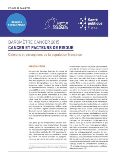Baromètre Cancer 2015. Cancer et facteurs de risque. Opinions et perception de la population française