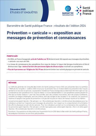 Prévention « canicule » : exposition aux messages de prévention et connaissances. Baromètre de Santé publique France : résultats de l’édition 2024