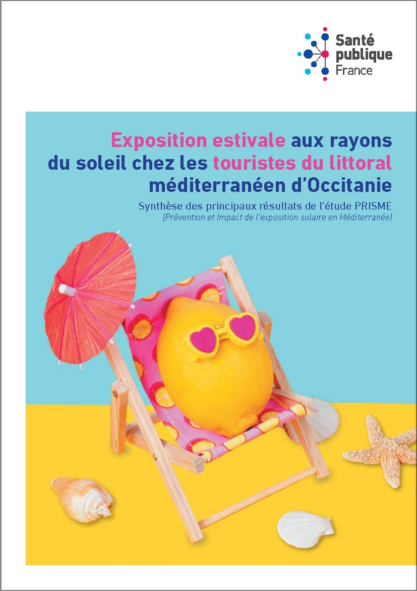 En Occitanie, le bord de la Méditerranée s'étend sur 200 km. Au printemps et en été, la région qui connait un fort ensoleillement (indices UV autour de 8 ou 9), accueille de nombreux touristes. Dans ce contexte, Santé publique France a souhaité analyser les comportements de ces touristes face au soleil à travers l'étude PRISME (Prévention et Impact de l'exposition solaire en Méditerranée). Les objectifs de l'étude étaient : d'identifier les facteurs qui influencent les comportements de protection ou d'exposition solaire des touristes ; de mesurer et de comparer l'efficacité de deux interventions de prévention pour modifier les comportements de protection solaire des touristes. Ces deux interventions étaient : une intervention mettant en avant les risques pour la santé d'une exposition aux UV (coups de soleil, atteintes des yeux, cancers) ; une intervention mettant en avant les dommages des UV sur l'apparence physique (vieillissement prématuré de la peau).L'étude a été menée en 2019 dans huit campings du littoral méditerranéen auprès de touristes français âgés de 12 à 55 ans. Des touristes tirés au sort et volontaires pouvaient bénéficier soit de l'intervention centrée sur les risques, soit de l'intervention centrée sur l'apparence physique (sous la forme d'entretiens de prévention individuels avec des intervenants spécialisés), soit d'aucune intervention, et devaient répondre à des questionnaires en face à face au début et à la fin de leur semaine de vacances au camping. Ces mêmes touristes ont été réinterrogés à l'aide d'un questionnaire en ligne proposé au cours de l'automne 2020 (plus d'un an après l'intervention). Cette synthèse présente les principaux résultats de l'étude, rappelle quels sont les effets néfastes de l'exposition aux rayons du soleil, quels sont les facteurs qui influencent les comportements de protection solaire, quelles sont les interventions efficaces et formule quelques recommandations clés à destination des touristes, des professionnels du tourisme et des collectivités, ainsi que pour les décideurs.