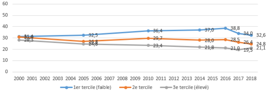 - entre 2000 et 2016 les écarts en fonction du niveau socio-économique se sont creusés ;