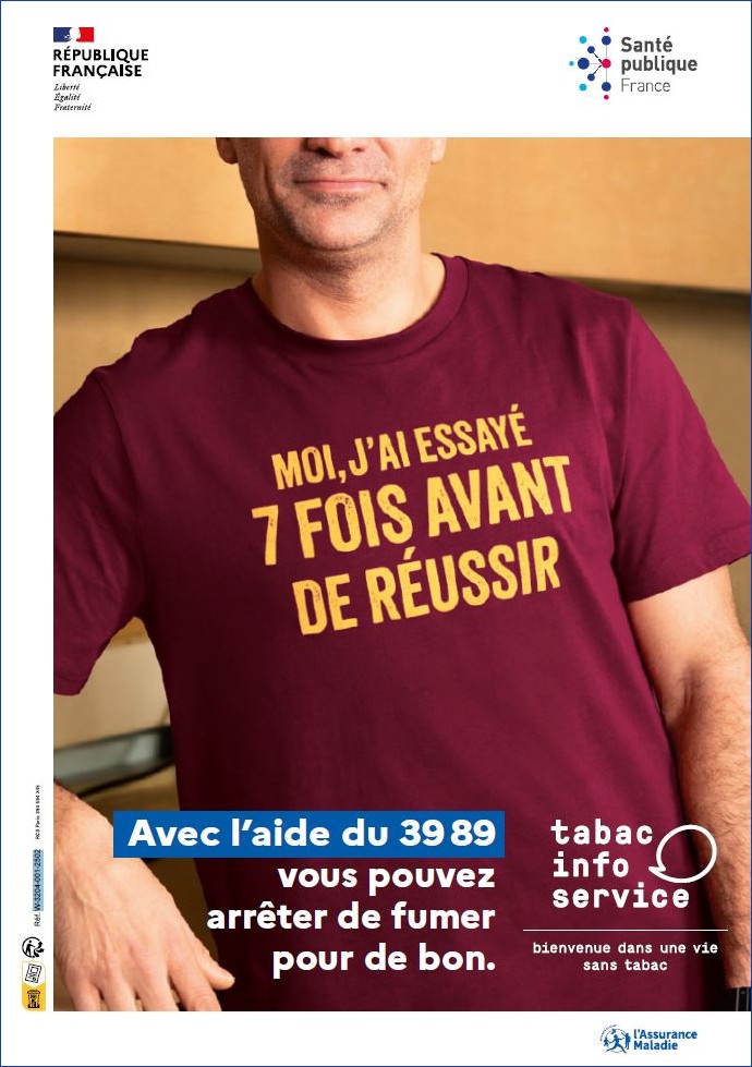 Cette affiche vise à normaliser les tentatives d'arrêt du tabac comme une étape du sevrage. En effet, chaque tentative est un pas vers l'arrêt définitif. Elle promeut...