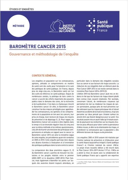 Baromètre cancer 2015. Gouvernance et méthodologie de l'enquête