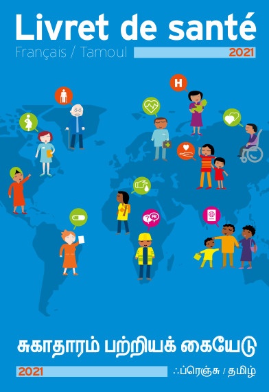 Ce livret de santé français/tamoul est un support de communication et de dialogue pour les personnes migrantes et les professionnels de la santé ou du social. Il est conçu pour aider chacun à mieux comprendre le système de protection maladie français, les droits et démarches et ainsi faciliter l'accès aux soins et à la prévention. La présentation bilingue sur une double page facilite la compréhension réciproque dans les échanges. Cette nouvelle édition enrichie aborde les principales thématiques de santé et fournit des informations pratiques pour faciliter l'accès aux soins et la vie quotidienne.