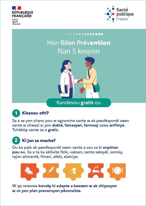Mon Bilan Prévention, en 5 questions [Flyer A5, Créole Haïtien]