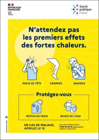 This poster illustrates the initial effects of extreme heat and the steps you can take to prevent them.