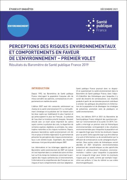 Perceptions of Environmental Risks and Environmentally Friendly Behaviors—Part One. Results of the 2019 Santé publique France Barometer