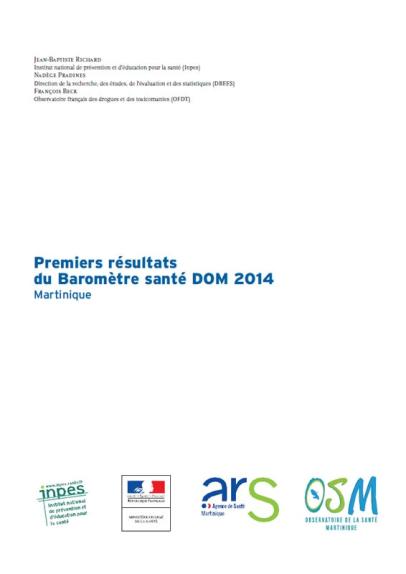 This report on the health of French residents in Martinique provides a summary of the initial findings from the 2014 Overseas Departments Health Barometer. It outlines the island’s sociodemographic data before presenting, in the form of annotated charts, the responses of the 2,000 residents surveyed regarding perceived health, access to information, use of healthcare services, forgoing healthcare, disability, cancer screening, vaccination, mental health, sleep problems, tobacco use and e-cigarette use, alcohol consumption, illicit drug use, body weight, physical activity (including swimming ability), accidents, falls, helmet use, first sexual intercourse, and contraceptive practices.