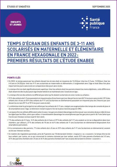 Screen time among children aged 3–11 attending preschool and elementary school in mainland France in 2022: initial findings from the Enabee study