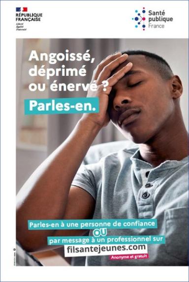 Feeling anxious, depressed, or upset? Talk about it. [40x60 poster, high school, boy, French overseas departments and regions]