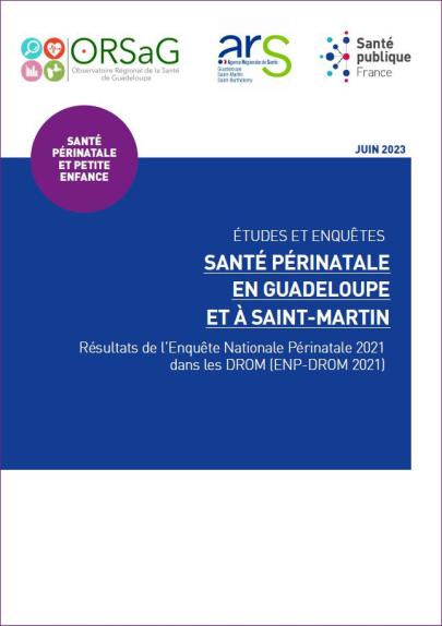 Objective – To describe the key indicators of the health status of women and children at birth and two months after birth in Guadeloupe and Saint Martin, and to compare them with those recorded in mainland France and in the other overseas departments and regions (DROM). Method – The 2021 ENP survey was conducted nationwide for one week from March 15 to 21, 2021, and for nine weeks in Guadeloupe and Saint Martin from March 15 to May 16, 2021. All births occurring in public and private maternity hospitals and birth centers during the study period were included. Results – In Guadeloupe and Saint Martin, 690 and 93 births, respectively, were recorded in the 2021 ENP-DROM. The survey results show that perinatal health indicators in Guadeloupe remain a cause for concern. The preterm birth rate and the proportion of low-birth-weight babies (<2,500 g) are high (10.2% and 10.8%, respectively). Medical factors known to be associated with preterm birth (obesity, high blood pressure, and preeclampsia) were found at higher rates than in mainland France. Regarding contraception, 23.0% of women in Guadeloupe report never having used a contraceptive method (vs. 11.8% in mainland France). Two months into pregnancy, 71.2% of women report breastfeeding their child (30.1% exclusively and 41.1% mixed, compared to 34.4% and 19.8%, respectively, in mainland France). Furthermore, the data show that the socioeconomic context is more unfavorable: 33.5% of women in Guadeloupe and 30.4% in Saint Martin report a monthly income of less than 1,000 euros (vs. 7.5% in mainland France). Conclusion – The results of the 2021 ENP-DROM highlight that perinatal health indicators are generally poorer in Guadeloupe and Saint Martin than those recorded in mainland France. These data are useful for tailoring health promotion campaigns and prevention messages in the field of perinatal care, and for providing the best possible support to women from pregnancy through the postpartum period.