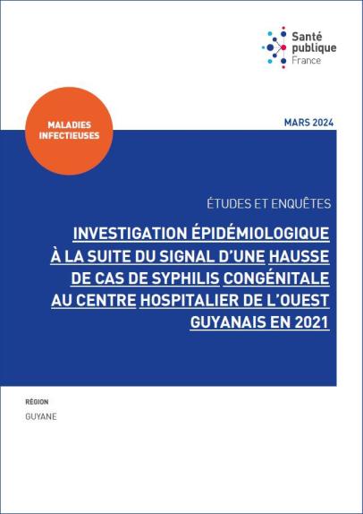Introduction: In March 2022, the Department of Obstetrics and Gynecology at the Centre hospitalier de l'Ouest guyanais (CHOG) reported to the French Guiana Regional Health Agency a sharp increase since 2021 in the number of pregnant women testing positive for syphilis, accompanied by an alarming rise in the number of cases of congenital syphilis. Hospital data confirmed that the increase was limited to western French Guiana and along the Maroni River. To better characterize the epidemiological situation of syphilis in western French Guiana since 2020 and the profile of women at risk, a supplementary investigation was launched by the French Guiana unit of Santé publique France. Method: A descriptive analysis of epidemiological trends in syphilis among the general population in western French Guiana from 2020 to 2022, as well as the characteristics of pregnant women followed at the CHOG in 2021 and 2022 who tested positive for syphilis, was conducted using biological data and medical records from the CHOG. Results: Between 2020 and 2022, an average of more than 9,000 people were screened annually at the CHOG, and the positivity rate increased 17-fold during this period. In 2021, 51 pregnant women who tested positive for syphilis during pregnancy were followed at CHOG, and among them, 22 gave birth to a child with confirmed or probable congenital syphilis. Over the 2021–2022 period, nearly 80% of pregnant women with syphilis were diagnosed in the second or third trimester of pregnancy, and 90% of them did not receive prenatal care in accordance with recommendations (number of visits and ultrasounds, trimester of first visit, and/or number of serology tests). Compared to women whose children were born free of the infection, those who gave birth to a newborn with congenital syphilis in 2021 were younger (21 years old versus 24 years old), the child was more often premature (38% of cases versus 11%), and treatment was administered later in the pregnancy. Nearly one in five women whose child was born with congenital syphilis became infected during pregnancy. Conclusion: The elimination of congenital syphilis is defined as a public health priority by the World Health Organization (WHO). The increase in hospitalizations for syphilis among pregnant women, accompanied by a decrease in hospitalizations for congenital syphilis among children in 2022 at the CHOG, appears to demonstrate the effectiveness of measures implemented as early as 2021 to improve screening and care for women with positive syphilis serology during pregnancy (3 screenings during pregnancy, protocol, and care pathway). Two major challenges in the fight against congenital syphilis in Western French Guiana have been identified: early screening for syphilis during pregnancy and the screening and treatment of sexual partners. Actions must be implemented to achieve the WHO target of fewer than 50 cases of congenital syphilis per 100,000 births by 2030.