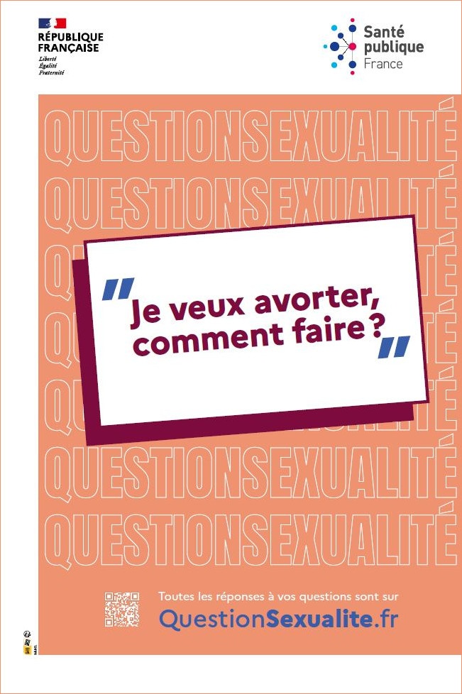 Published in conjunction with Sexual Health Week 2024, this poster encourages people to visit the QuestionSexualite.fr website to learn more about abortion. Tagline: "I want to have an abortion....