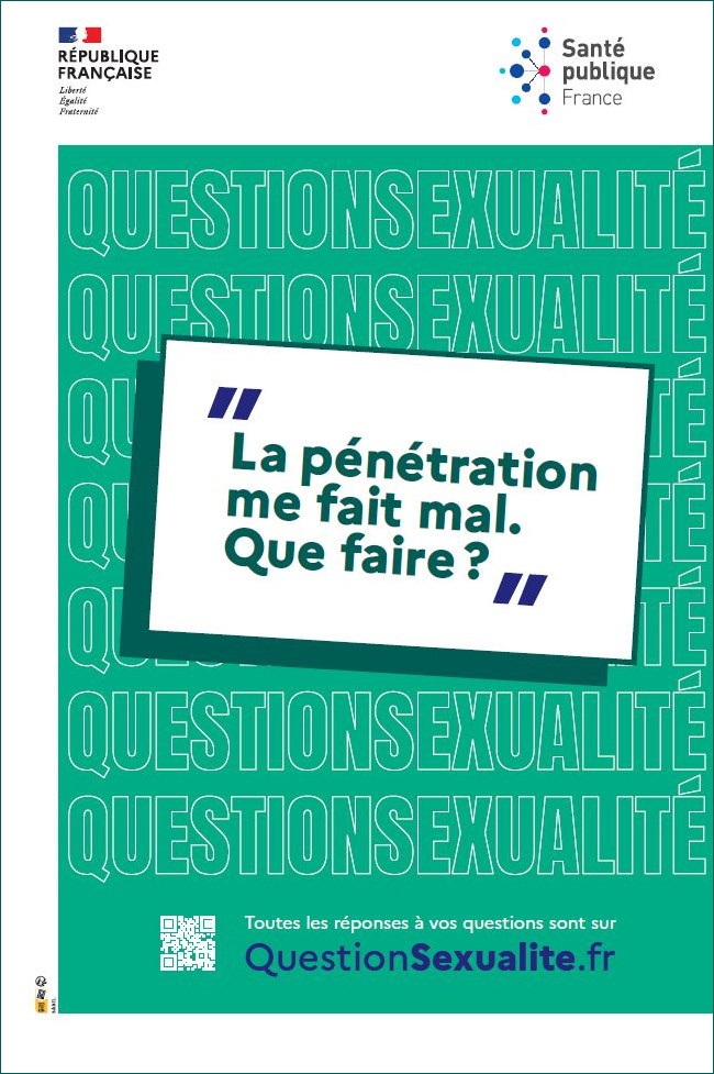 Published in conjunction with Sexual Health Week 2023, this poster encourages people to visit the QuestionSexualite.fr website to learn more about dyspareunia, or pain associated with penetration....