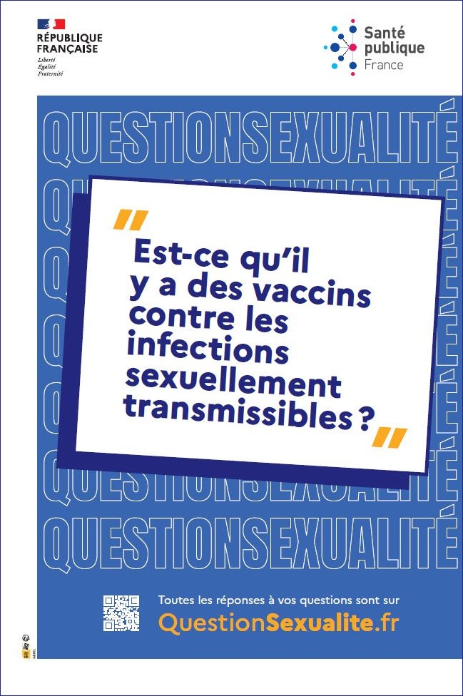 Published in conjunction with Sexual Health Week 2023, this poster encourages people to visit the QuestionSexualite.fr website to find out whether vaccines can protect against STIs. Tagline: "Are...