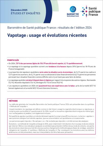 Vaping: Current Trends and Recent Developments. Santé publique France Barometer: Results of the 2024 Edition