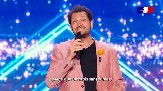 A poster encouraging people to quit smoking and promoting smoking cessation aids from Tabac info service, displayed in the hospitality industry.