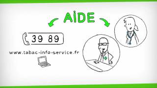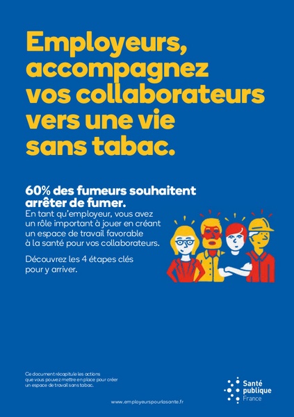 A poster encouraging people to quit smoking and promoting smoking cessation aids from Tabac info service, displayed in workplace settings for job seekers.