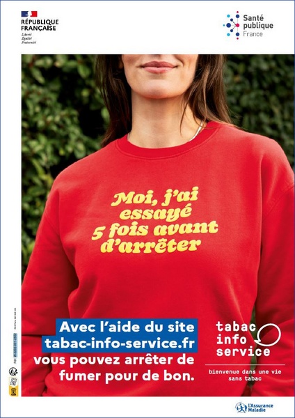This poster aims to normalize attempts to quit smoking as part of the quitting process. In fact, every attempt is a step toward quitting for good. It also promotes the Tabac info service app to...