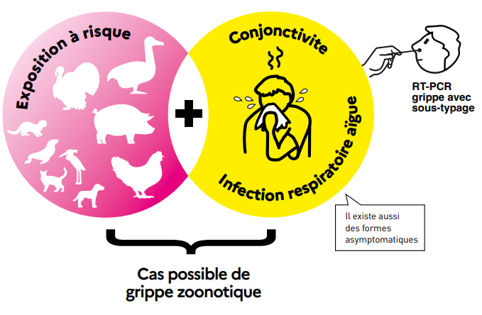 Santé publique France a mis en place une conduite à tenir en cas de suspicion de grippe aviaire ou porcine, prenant en compte les recommandations émises par le Haut Conseil de la Santé Publique dans avis du 16 mai 2025 et les dernières informations cliniques, virologiques et épidémiologiques disponibles sur la situation internationale en lien avec les virus influenza à potentiel zoonotique.