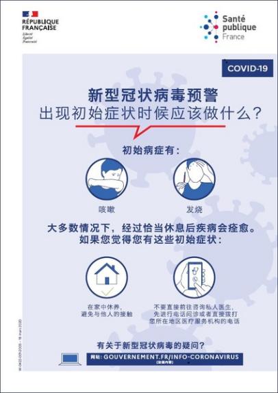 Alerte coronavirus : que faire face aux premiers signes [Mandarin]