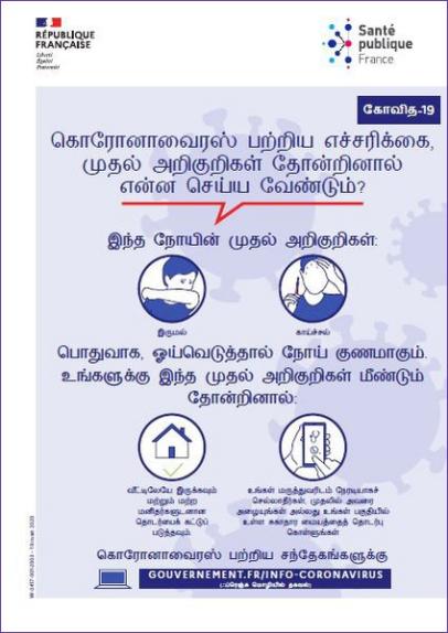 Alerte coronavirus : que faire face aux premiers signes [Tamoul]