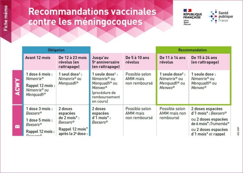 Recommandations vaccinales contre les méningocoques : Fiche mémo