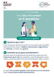 Un dépliant pédagogique vous propose des repères pour parler de Mon bilan prévention avec les personnes que vous accompagnez et les orienter vers le dispositif.