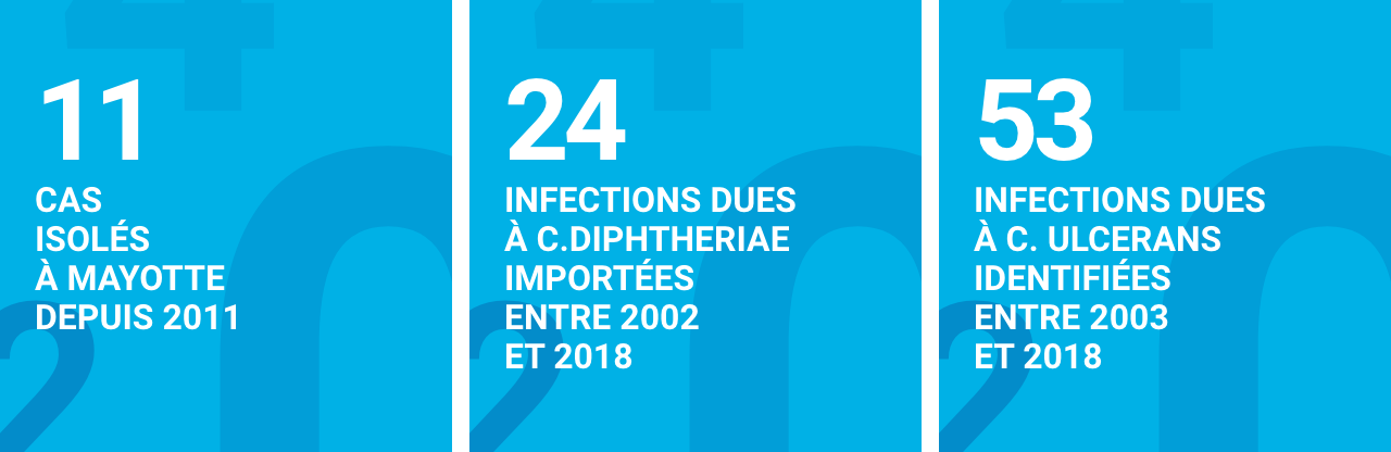 Par ailleurs, Mayotte est devenu le 101e département français en 2011. Depuis 2011, des isolements de C. diphtheriae tox+ ont été notifiés aux autorités de santé.