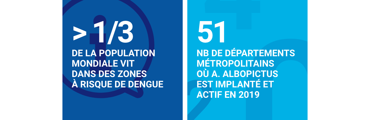 La dengue est une infection qui sévit majoritairement en zone tropicale et inter tropicale où les vecteursAedes aegypti et Aedes albopictus sont présents. Aedes albopictus est aussi présent en zone tempérée, notamment en Europe, y compris en France métropolitaine où quelques épisodes de transmission ont été identifiés.