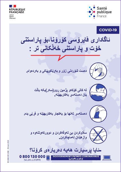 Alerte coronavirus : pour se protéger et protéger les autres [Kurde sorani]