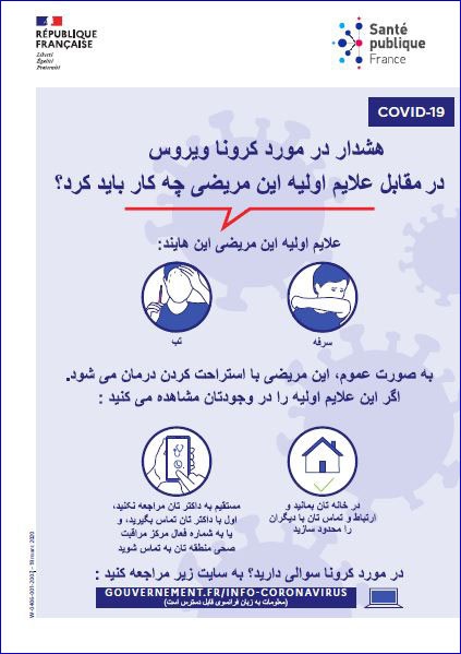 Cette affiche illustre les premiers symptômes du coronavirus et la conduite à tenir quand on les ressent.