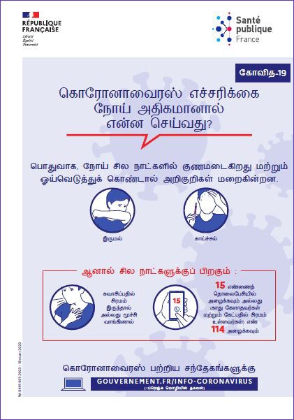 Cette affiche indique la conduite à tenir quand on ressent des symptômes graves de la maladie.