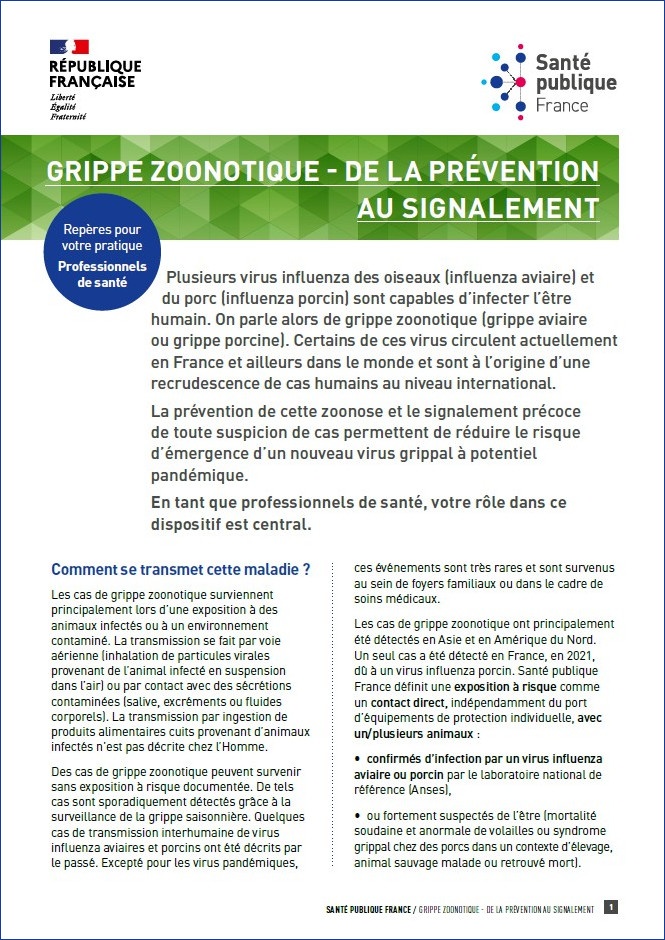 Grippe zoonotique - De la prévention au signalement : Repères pour votre...