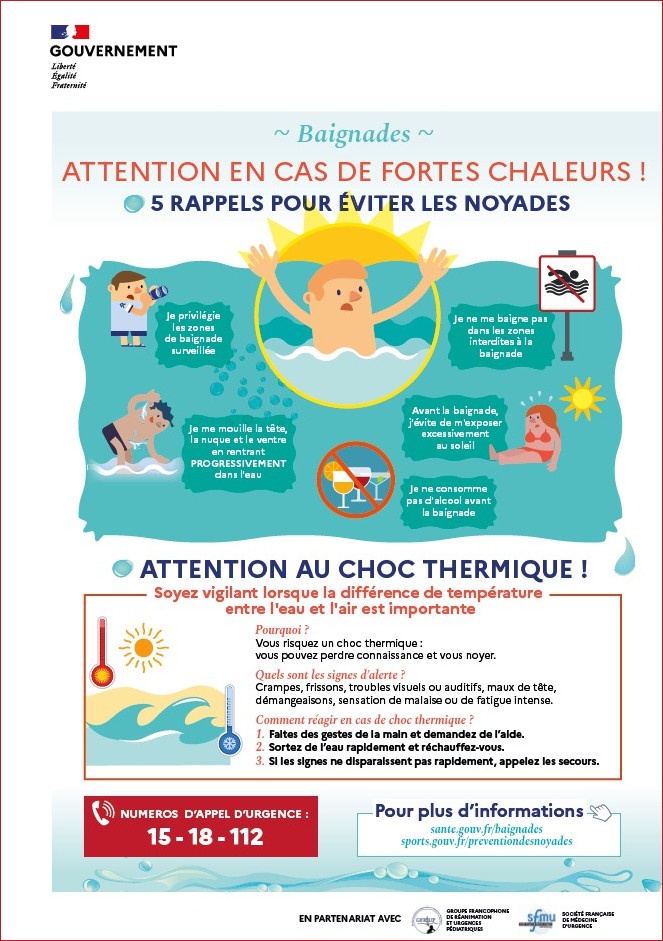 La baignade en sécurité, maintenant c'est entre 2 drapeaux rouges et...