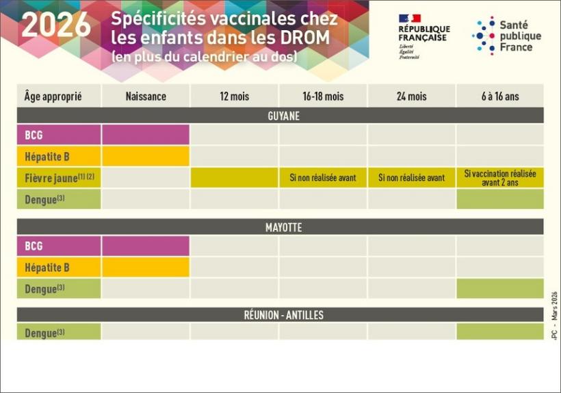 Calendrier simplifié des vaccinations 2026 dans les DROM [carte postale]