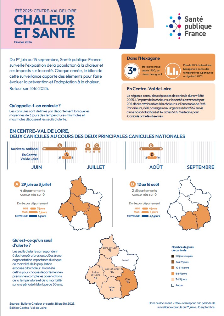 La région a connu deux épisodes de canicule durant l'été 2025. L'impact de la chaleur sur la santé s'est traduit par 204 décès attribuables à la chaleur sur l'ensemble de l'été. Par ailleurs, 860 passages aux urgences (dont 567 suivis d'une hospitalisation) et 47 actes SOS Médecins pour iCanicule ont été observés.