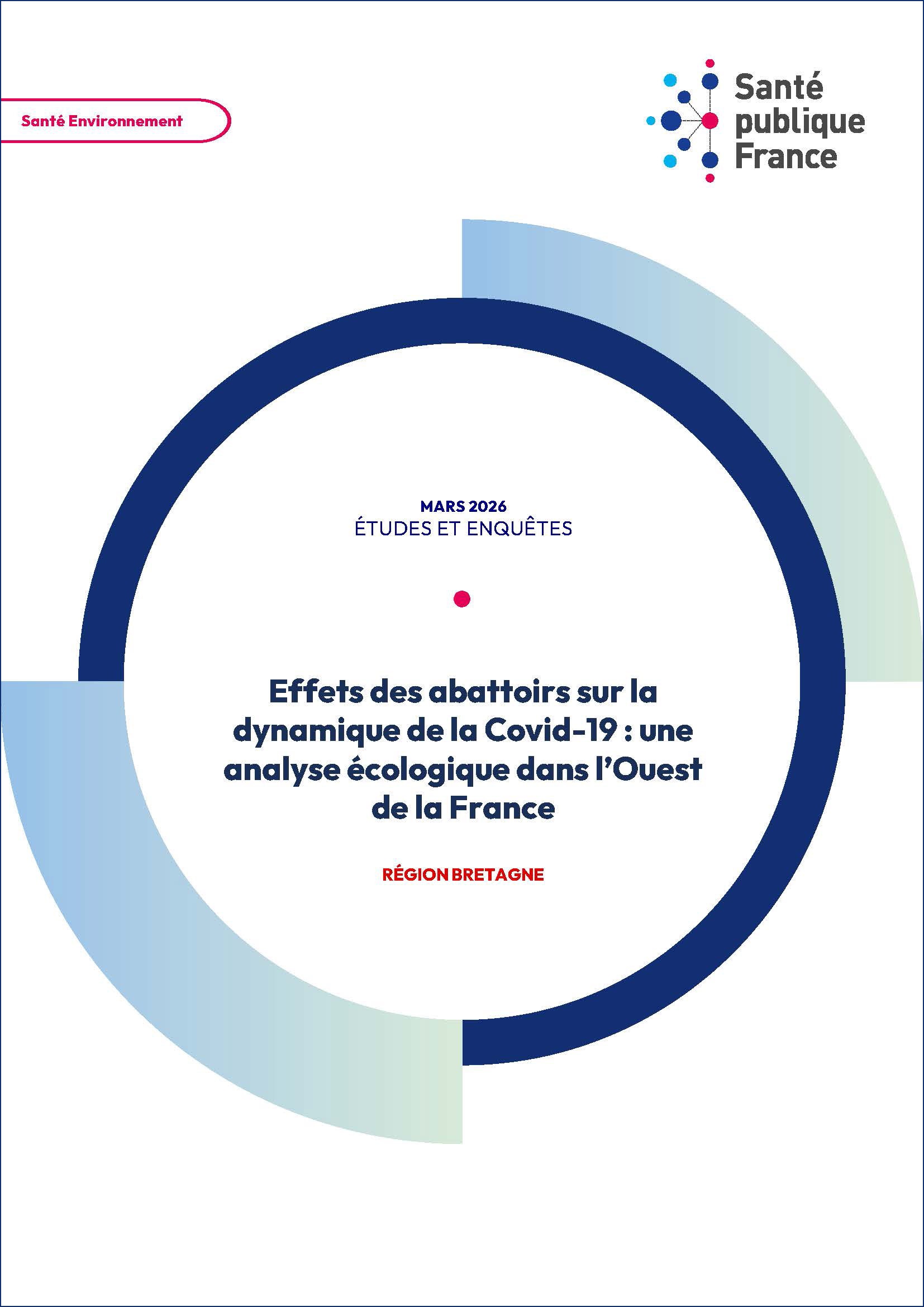 Des clusters de Covid-19 sont apparus au début de la pandémie dans les abattoirs de l'Ouest de la France avec un risque de diffusion communautaire. L'étude évalue l'effet de la présence d'abattoirs sur la dynamique épidémique de la Covid-19 en Bretagne et Pays de la Loire entre le 8 juillet 2020 et le 7 décembre 2021. Trois indicateurs sanitaires ont été étudiés : l'incidence, les taux de positivité et les taux de dépistage. Une étude écologique a été menée en utilisant les IRIS comme unité spatiale d'analyse. Les tests et cas issus du Système d'information de dépistage populationnel (Sidep) étaient agrégés par IRIS (Îlot regroupé pour l'information statistique), semaine, sexe et tranche d'âge. Deux indicateurs d'exposition ont été construits, distinguant abattoirs de volailles et abattoirs de boucherie. Les nombres de cas et tests à la semaine et IRIS ont été régressés sur les indicateurs d'exposition aux abattoirs en contrôlant les facteurs d'ajustement suivants : la taille des ménages, le degré d'urbanisation communal, et quatre variables mesurant la défaveur sociale. Un effet aléatoire était associé au département. Une interaction entre la tendance temporelle et les indicateurs d'exposition aux abattoirs de volailles et boucherie a été prise en compte à l'aide d'un produit tensoriel. La couverture vaccinale Covid-19 a été utilisée pour des analyses de sensibilité. Pour chaque indicateur étudié — incidence, taux de positivité ou de dépistage — les résultats ont été fournis sous forme de ratios de taux (RR) pour une augmentation du 1er au 3e quartile de chaque indicateur d'exposition. La zone couvrait 3 682 IRIS (7 248 566 habitants) : 1 894 (51,4 %) étaient considérés exposés aux abattoirs de boucherie et 1 518 (41,2 %) aux abattoirs de volailles. Des associations positives suggèrent que l'exposition aux abattoirs de boucherie a contribué à une amplification de l'épidémie pendant l'été 2020 alors que le virus circule peu. Cet effet s'est estompé en octobre 2020 avec l'augmentation de la circulation virale. Sur les 9 premières semaines étudiées, les associations sont fortes quel que soit l'indicateur étudié : l'augmentation du taux de positivité associée à une augmentation de l'exposition est comprise entre 57,2 % (semaine 1, RR de 1,572 [1,424-1,735]) et 18,8 % (semaine 9, RR de 1,188 [1,136-1,242]). Des associations de moindre ampleur apparaissent lors de la 3e vague épidémique dans un contexte de forte circulation virale. En semaine 41, les RR sont de 1,047 [1,036-1,058] pour le dépistage et 1,090 [1,061 -1,120] pour l'incidence. Pour les abattoirs de volailles, l'effet des expositions a été estimé constant dans le temps avec des RR proches de 1 : 1,016 [1,004-1,029] pour l'incidence, 1,017 [1,005-1,028] pour la positivité, et 1,008 [1,004-1,013] pour le dépistage. Les hypothèses expliquant les différences d'impact entre les deux filières restent à valider. Ces résultats soulignent la nécessité de préparer les futures émergences respiratoires en associant des actions ciblées envers les travailleurs des abattoirs, particulièrement ceux de la filière boucherie, et des mesures de prévention élargies aux populations résidant à proximité de ces sites, afin de limiter la diffusion communautaire.