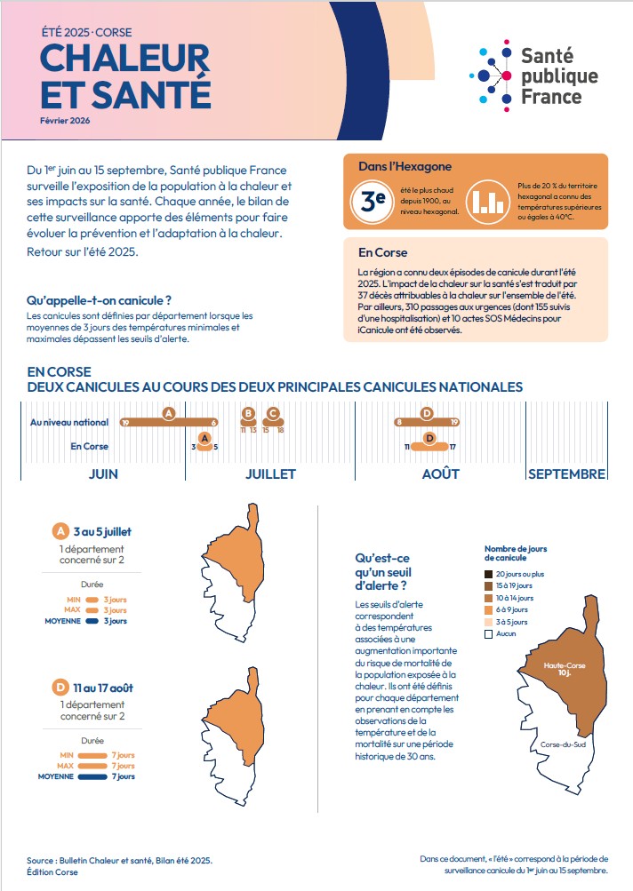 La région a connu deux épisodes de canicule durant l'été 2025. L'impact de la chaleur sur la santé s'est traduit par 37 décès attribuables à la chaleur sur l'ensemble de l'été. Par ailleurs, 310 passages aux urgences (dont 155 suivis d'une hospitalisation) et 10 actes SOS Médecins pour iCanicule ont été observés.