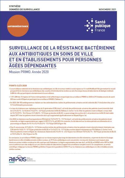 Surveillance de la résistance bactérienne aux antibiotiques en soins de ville et en établissements pour personnes âgées dépendantes. Mission PRIMO. Année 2020