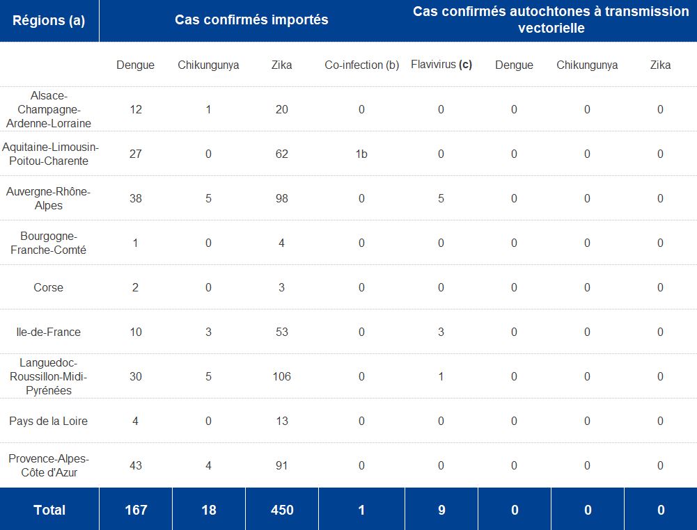 * Impossible de déterminer si infection à virus zika ou dengue.